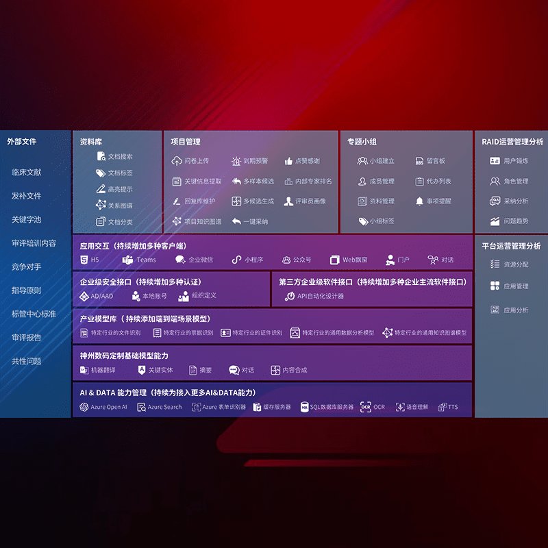 医疗器械产品上市前,,,,要熟悉严格与繁复评审标准,,,整理分析监管机构指导文件中的海量信息。。。。企业急需一个智能化解决方案,,提升知识管理效率,,,提高评审通过率,,,以提升其市场竞争力。。。